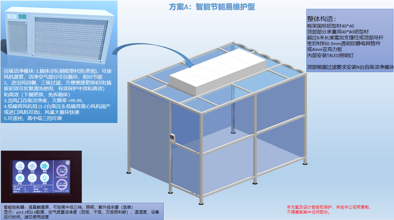 2.與土建式或裝配式百級潔凈室相 比,投資少,見效快,安裝簡便,運行費用低。